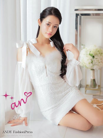 キャバドレス ミニドレス an アン ファー ジップデザイン チェーン リボン 長袖 キャミソール タイトミニドレス