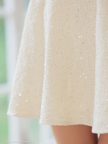ノースリーブ ジップデザイン リボン スパンコール Aライン フレアミニドレスの全身サイド画像4