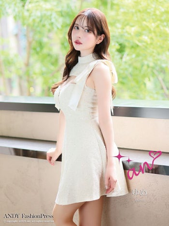 4. 【an/アン】ノースリーブ ジップデザイン リボン スパンコール Aライン フレアミニドレス(aoc3772)