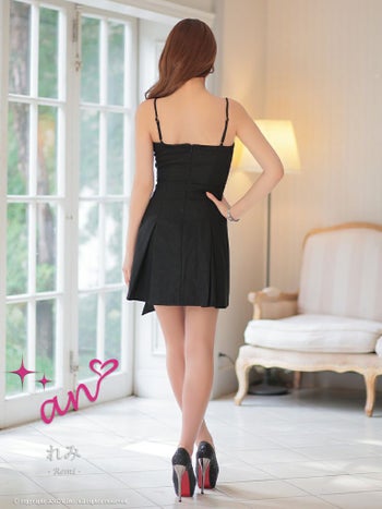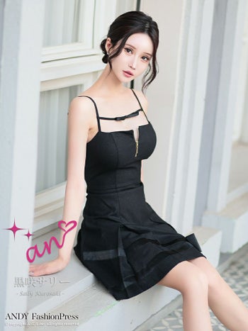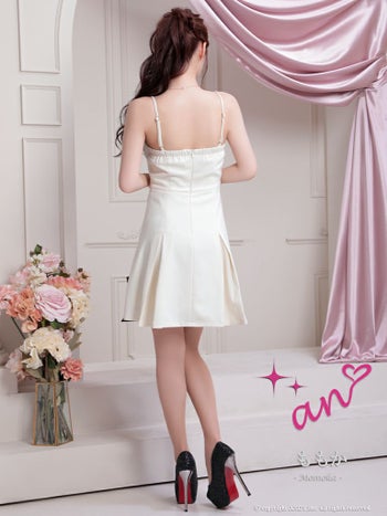 キャバドレス ミニドレス an アン ジップデザイン リボン Aライン プリーツ モノトーン キャミソール フレアミニドレス