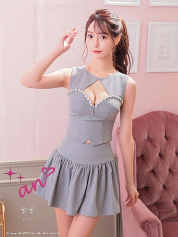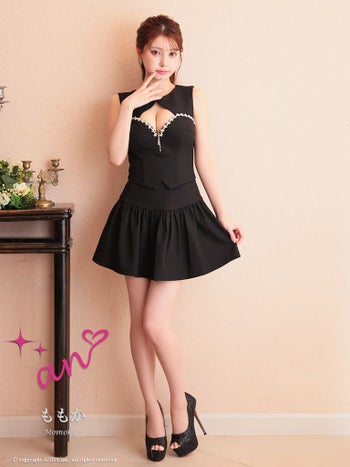 キャバドレス ミニドレス an アン ジップデザイン ワンカラー セットアップ ビジュー カットアウト Aライン ノースリーブ フレアミニドレス