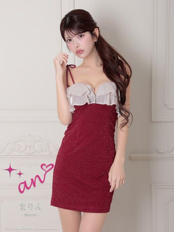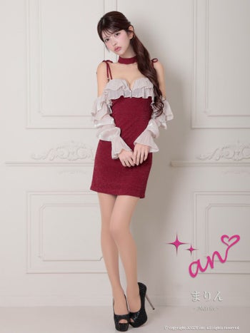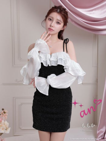 キャバドレス ミニドレス an アン 2WAY パール ラメ フリル 長袖 オフショルダー キャミソール タイトミニドレス