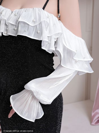 4. 【an/アン】2WAY パール ラメ フリル 長袖 肩あき ジップデザイン チョーカー付き タイトミニドレス(aoc3800)