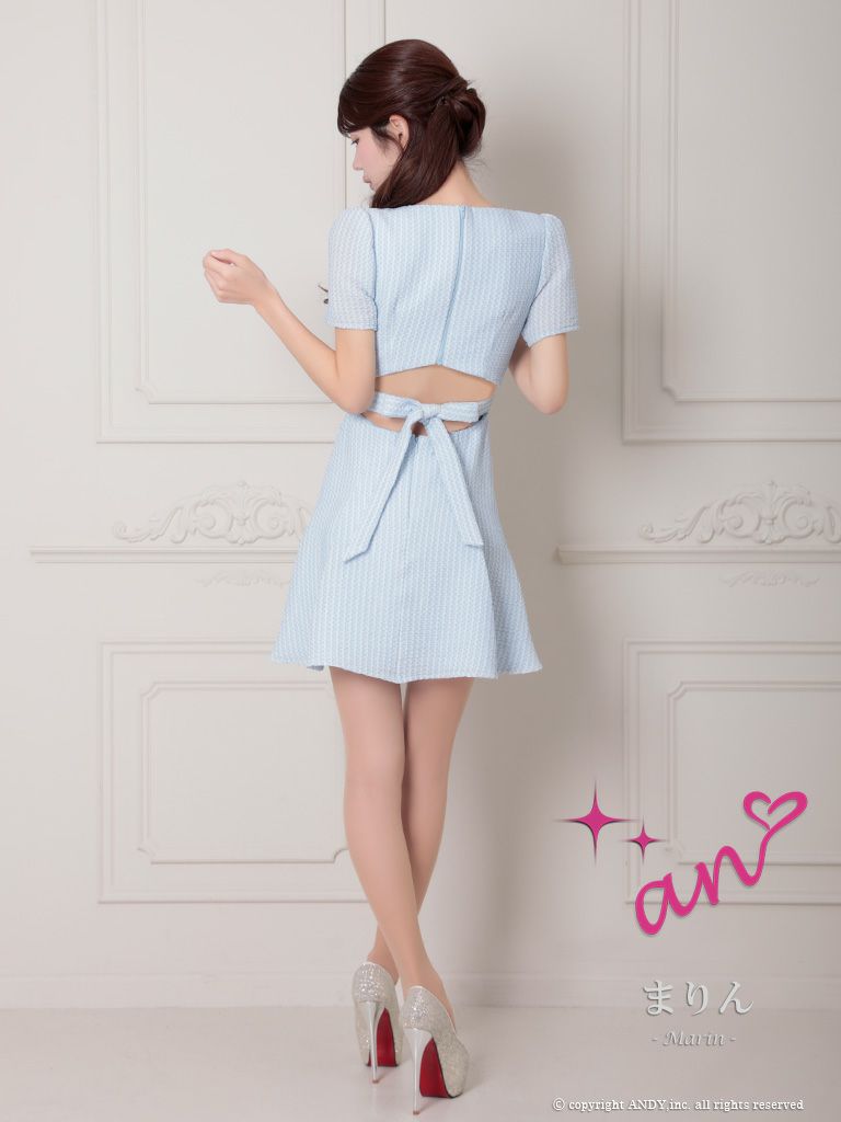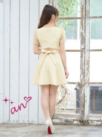 キャバドレス an ガーリー ジップデザイン 半袖 Vカット 背中魅せ バックリボン フェイクポケット フレアミニドレス
