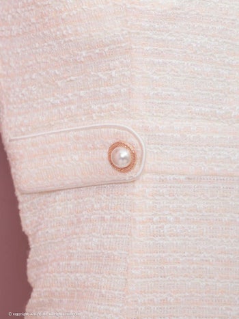 ガーリー ノースリーブ ジップデザイン ツイード スクエアネック ウエストマーク パールボタン タイトミニドレスのメイン画像2