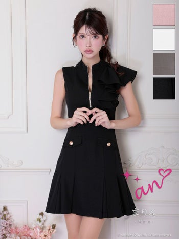 キャバドレス an ガーリー ノースリーブ ジップデザイン ポケット ショルダー フリル プリーツ フレアミニドレス