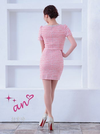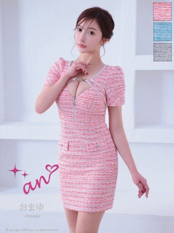 キャバドレス タイトミニドレス an アン ツイード ハートボタン 半袖 ジップデザイン 飾りポケット カットデザイン