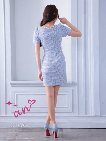 キャバドレス タイトミニドレス an アン 半袖 ハートボタン ツイード ジップデザイン 飾りポケット カットデザイン
