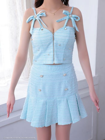 キャバドレス フレアミニドレス an アン キャミソール パールボタン ハートボタン ジップデザイン セットアップ