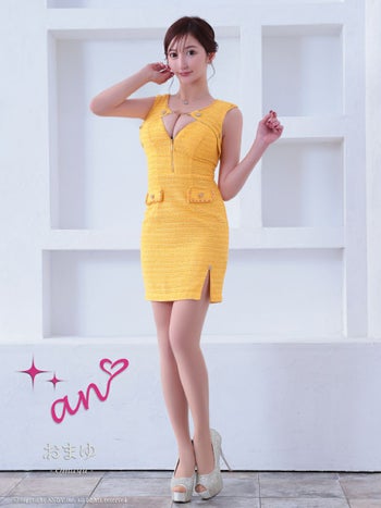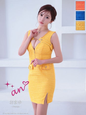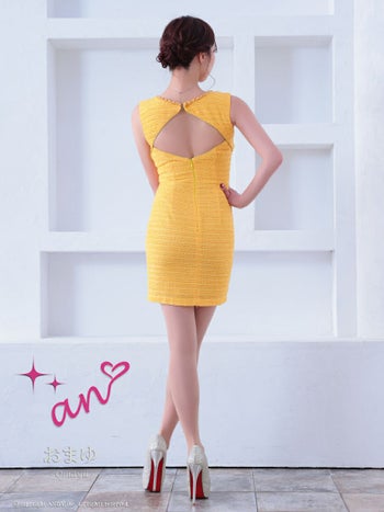 キャバドレス タイトミニドレス an アン ハートボタン 飾りポケット カットデザイン ノースリーブ ツイード ジップデザイン
