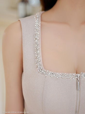 4. 【an/アン】ジップデザイン セットアップ ノースリーブ ワンカラー ビジュー 飾りポケット スクエアネック ラメ タイトミニドレス(aoc3867)
