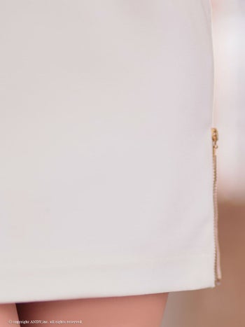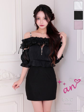 5. 【an/アン】キャミソール 肩あき 袖あり ジップデザイン フリル リボン ビジュー パフスリーブ タイトミニドレス(aoc3882)