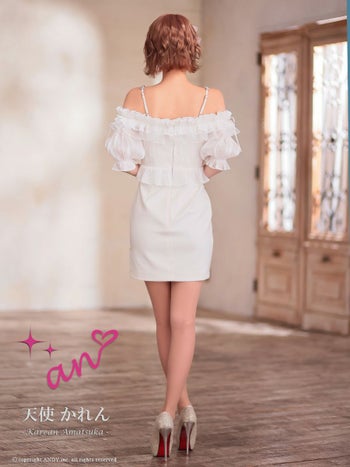 キャバドレス an アン キャミソール 肩あき 袖あり ジップデザイン フリル リボン ビジュー パフスリーブ タイトミニドレス