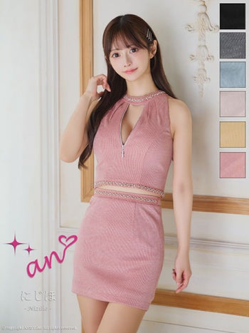 キャバドレス an アン セットアップ ラメ ジップデザイン ホルターネック ビジュー カットデザイン タイトミニドレス
