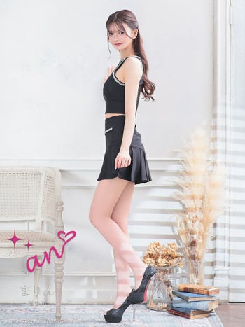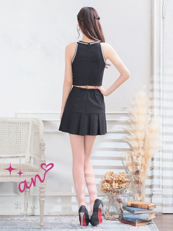 3. 【an/アン】ジップデザイン ノースリーブ セットアップ ビジュー カットデザイン フレアミニドレス(aoc3896)