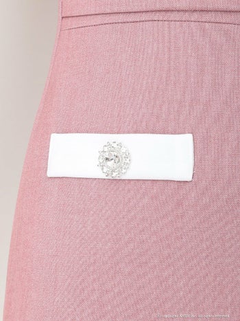 ビジューボタン バイカラー ウエストベルト 半袖 ジップデザイン パフスリーブ スクエアネック タイトミニドレスの詳細画像4