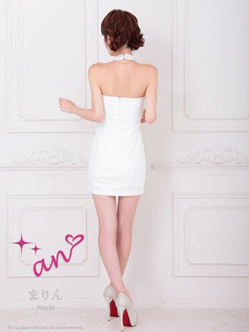 キャバドレス an アン バストジップ リボン ワンカラー ホルターネック ビジュー タイトミニドレス