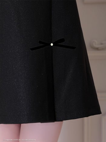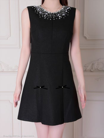 4. 【an/アン】ジップデザイン バックカット ノースリーブ プリーツ リボン ビジュー フレアミニドレス(aoc4027)