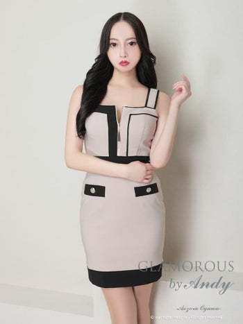 キャバドレス タイトミニドレス GLAMOROUS グラマラス ノースリーブ ポケット セットアップ ジップデザイン 綺麗め タイトミニドレス