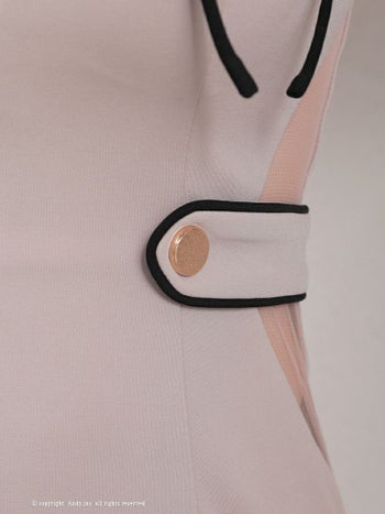 リボン 半袖 くびれ透け バイカラー ハイネック パフスリーブ タイトミニドレスの全身サイド画像1