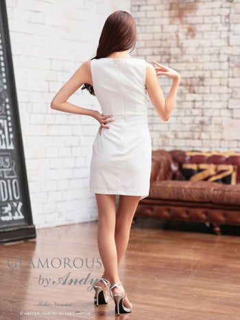 キャバドレス ミニドレス GLAMOROUS グラマラス ワンカラー カットアウト ジップデザイン アシンメトリー バックル ベルト ノースリーブ タイトミニドレス