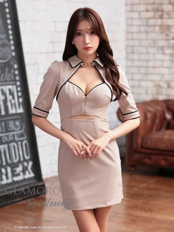 キャバドレス タイトミニドレス GLAMOROUS グラマラス 襟付き ジップデザイン 袖あり カットデザイン バイカラー
