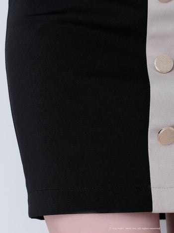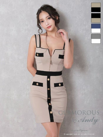 キャバドレス GLAMOROUS グラマラス スクエアネック バイカラー ジップデザイン ノースリーブ 飾りポケット 飾りボタン タイトミニドレス