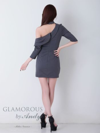 キャバドレス GLAMOROUS ワンショルダー 袖あり 取り外し可能 ジップデザイン タック アシンメトリー スリット タイトミニドレス