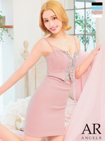XSあり!ツーピース風デザインが可愛い☆ SALE【Angel R/エンジェルアール】バストスパンコール セクシー ジップデザイン ストレッチ キャミソール タイトミニドレス (AR22824)