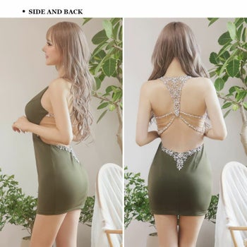 3. SALE【Angel R/エンジェルアール】バックオープン バックビジュー メッシュ ホルターネック ジップデザイン セクシー タイトミニドレス (AR24229)