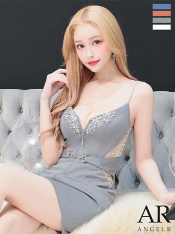 XSあり!ウエストベルトがワンポイント☆ 【Angel R/エンジェルアール】オープンバスト キャミソール ジップデザイン くびれ透け ビジュー ウエストベルト セクシー タイトミニドレス (AR24244)