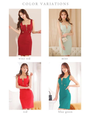 XS~Lあり!人気色が登場☆ SALE【DEA.by ROBE de FLEURS/ディア】ワンカラー スーパーストレッチ ワッフル ジップ ノースリーブ タイトひざ丈ドレス (DE2702)