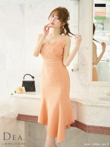 XS~Lあり!大人っぽいデザイン♪ 【DEA.by ROBE de FLEURS/ディア】ジップデザイン ツイード チェック柄 ノースリーブ マーメイド タイトひざ丈ドレス(fm2730)