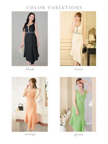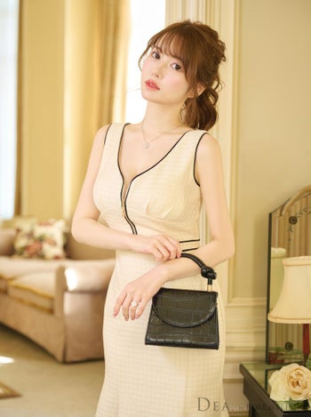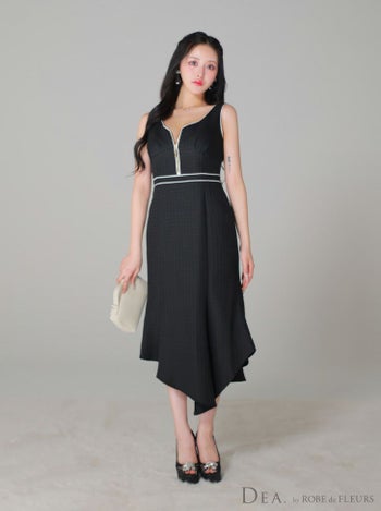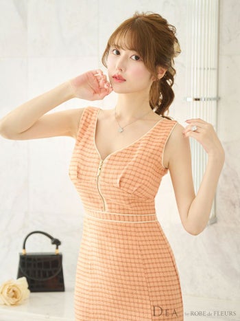 3. 【DEA.by ROBE de FLEURS/ディア】ジップデザイン ツイード チェック柄 ノースリーブ マーメイド タイトひざ丈ドレス(fm2730)