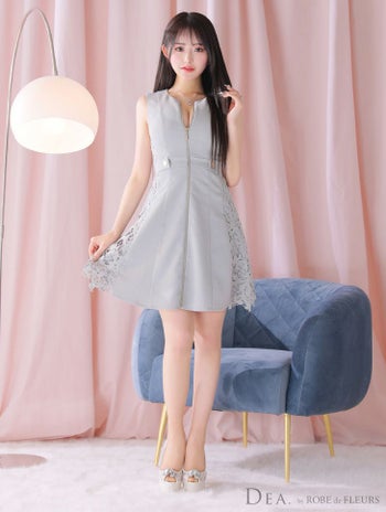 4. SALE【DEA.by ROBE de FLEURS/ディア】サイドレース ノースリーブ ジップデザイン フレアミニドレス(DE3329)