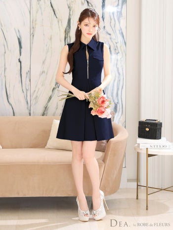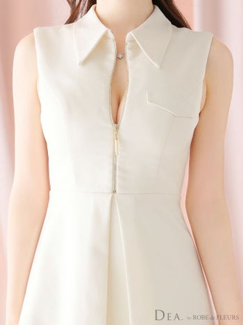 4. 【DEA.by ROBE de FLEURS/ディア】襟付き ノースリーブ シンプル フェイクポケット ジップデザイン フレアミニドレス(DE3337)