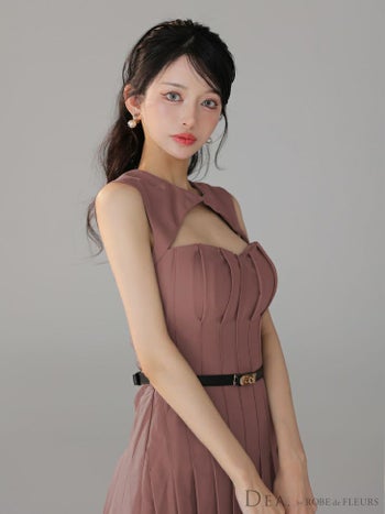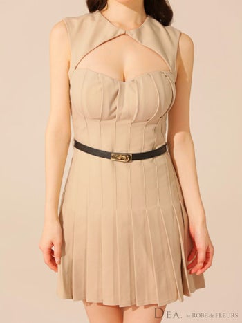 キャバドレス DEA. ROBE de FLEURS ディア ローブドフルール ウエストベルト バストカット ワンカラー ノースリーブ プリーツスカート フレアミニドレス