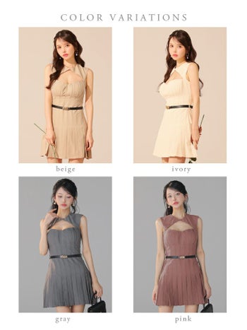 4. 【DEA.by ROBE de FLEURS/ディア】ウエストベルト バストカット ワンカラー ノースリーブ プリーツスカート フレアミニドレス (DE3398)
