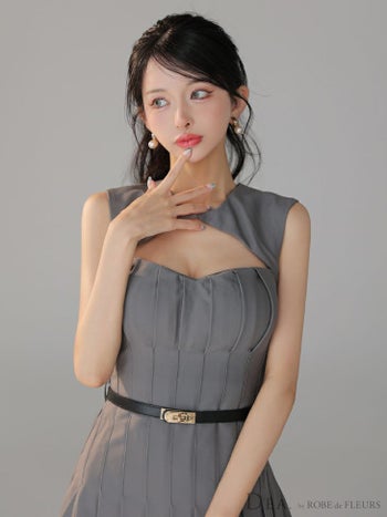 キャバドレス DEA. ROBE de FLEURS ディア ローブドフルール ノースリーブ プリーツスカート ウエストベルト バストカット ワンカラー フレアミニドレス
