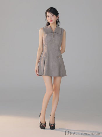 4. 【DEA.by ROBE de FLEURS/ディア】襟付き ノースリーブ シンプル スエード ジップデザイン フレアミニドレス (DE3458)