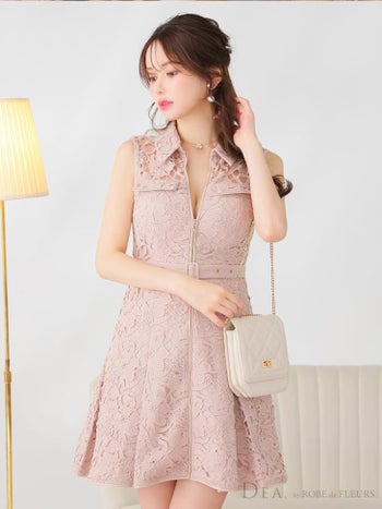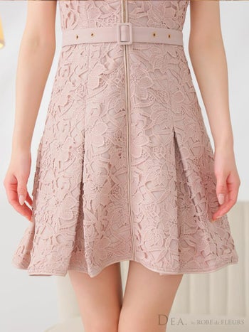 Lあり!大柄のレースがポイント☆ SALE【DEA.by ROBE de FLEURS/ディア】ベルト ジップデザイン ガーリー ノースリーブ レース フレアミニドレス (DE3546)