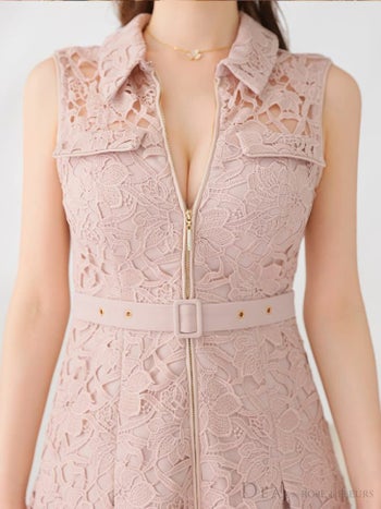 4. SALE【DEA.by ROBE de FLEURS/ディア】ベルト ジップデザイン ガーリー ノースリーブ レース フレアミニドレス (DE3546)