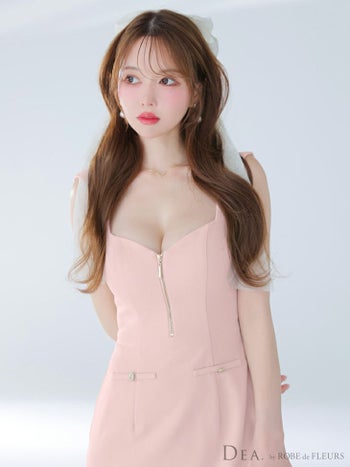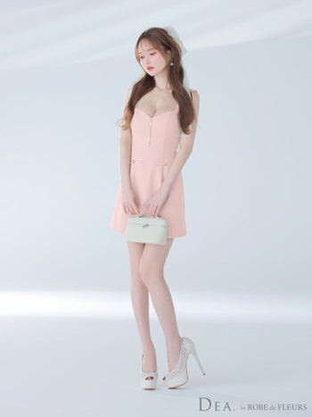 キャバドレス DEA. ROBE de FLEURS ディア ローブドフルール シンプル ノースリーブ ジップデザイン ワンカラー フレアミニドレス