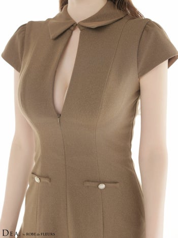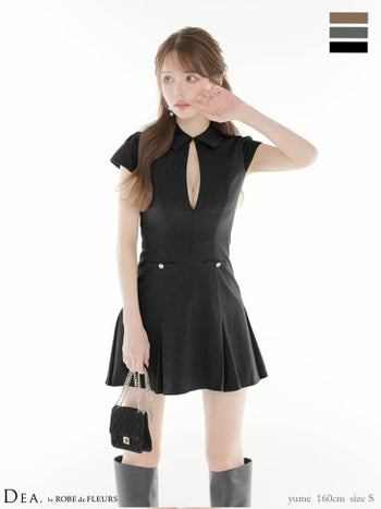キャバドレス DEA.by ROBE de FLEURS ディア ジップデザイン 半袖 ウエストボタン ラメツイル プリーツスカート 襟付き フレアミニドレス