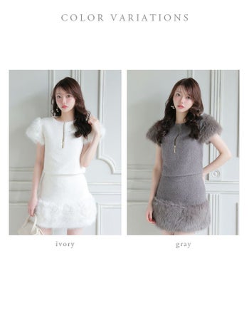 3. 【DEA.by ROBE de FLEURS/ディア】ブークレニットツイード 袖あり セットアップ ジップデザイン 袖ファー タイトミニドレス (DE4601)
