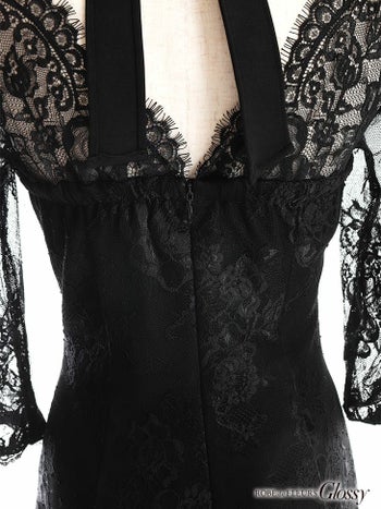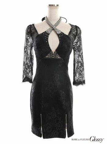 3. SALE【Glossy by ROBE de FLEURS/グロッシー】ワンカラー レーススリーブ 袖あり ジップデザイン タイトミニドレス(GL2628)