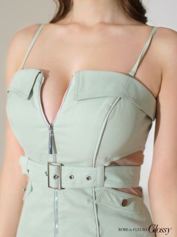3. 【Glossy by ROBE de FLEURS/グロッシー】ジップデザイン キャミソール くびれ透け ベルトデザイン セクシー サイドシースルー タイトミニドレス(GL3163)