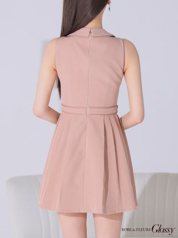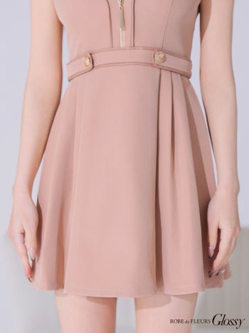 4. SALE【Glossy by ROBE de FLEURS/グロッシー】ジップデザイン 襟付き ノースリーブ バストオープン パイピング フレアミニドレス(GL3173)