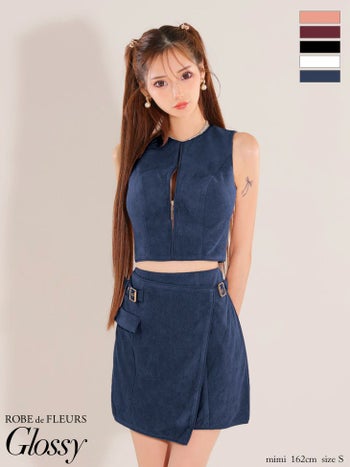 XSあり!大人っぽい印象に☆ 【Glossy by ROBE de FLEURS/グロッシー】ラップベルト セットアップ セクシー ノースリーブ ジップデザイン タイトミニドレス (GL3264)