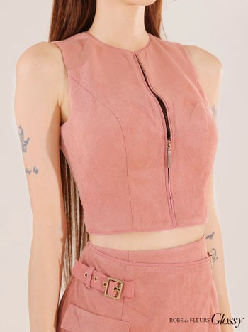 3. 【Glossy by ROBE de FLEURS/グロッシー】ラップベルト セットアップ セクシー ノースリーブ ジップデザイン タイトミニドレス (GL3264)